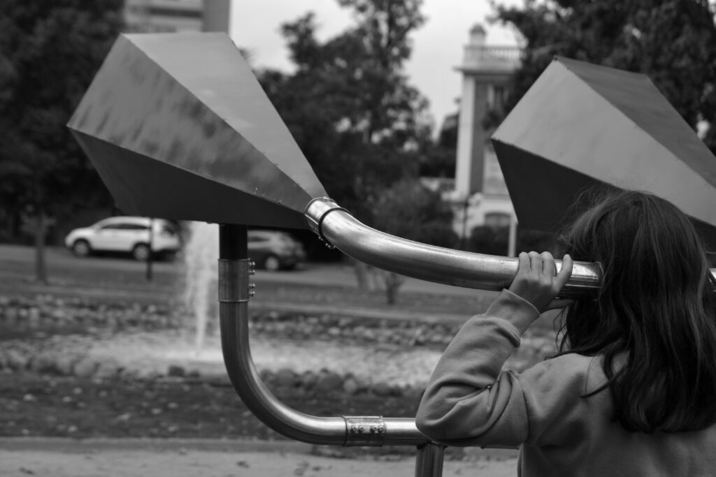 Sonoscopios un proyecto dedicado al diseño, fabricación e instalación de esculturas sonoras en el espacio público para la exploración de paisajes sonoros. Su objetivo principal es acercar a la comunidad a su entorno acústico a través de una escucha activa y atenta, promoviendo una relación más profunda y sensible con el espacio que habitamos. Pensados especialmente para plazas, parques o costaneras, los Sonoscopios cuentan con una estructura robusta y articulada, lo que permite su uso por personas de diferentes estaturas y en múltiples direcciones de escucha.